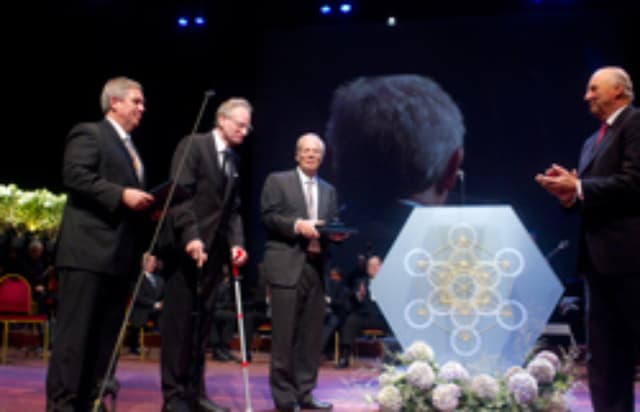 The Kavli Prizes recognize scientists for their seminal advances in three research areas: astrophysics, nanoscience and neuroscience, and are awarded biennially. The 2010 Kavli Prize laureates were chosen for research that has transformed our knowledge of basic units of matter, laid the foundations for the field of nanotechnology, revealed the molecular basis for the transfer of brain signals and other physiological functions, and made possible the building of telescopes that can see deeper into space and further back in time. Each laureate was presented with a gold medal and scroll. Each prize area also included a cash award of one million dollars.