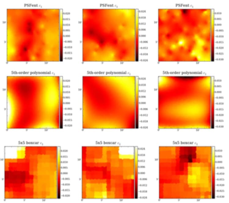 Now Chang and KIPAC alumnus Phil Marshall of Oxford University, along with colleagues from several institutions, have devised a new technique to interpolate the PSF across an image from sparsely sampled stars, and have shown that it will reduce the cumulative errors from LSST measurements of galaxy shapes and therefore in dark energy parameters. They call their algorithm PSFENT, and it is based on the maximum entropy method of model fitting, with the added ability to compare the model at the positions of stars in the field of view with those stars' shapes and iterate the process. In synergy with other areas of astrophysics, the technique was inspired by methods used to interpret maps of the cosmic microwave background radiation intensity.