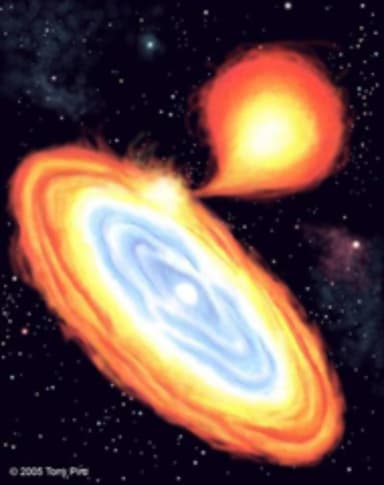 Bildsten explained that most stars end their lives gently, forming white dwarfs with the mass of the Sun packed into the radius of the Earth. Though very dense, these objects, made of either a mixture of carbon and oxygen or nearly pure helium, cool to temperatures so low that fusion reactions can no longer occur. However, in rare instances, two of these objects orbit each other so closely –– orbiting every few minutes –– so that the helium from the lighter of the two gets pulled off by tidal forces and accumulates on the more massive white dwarf.