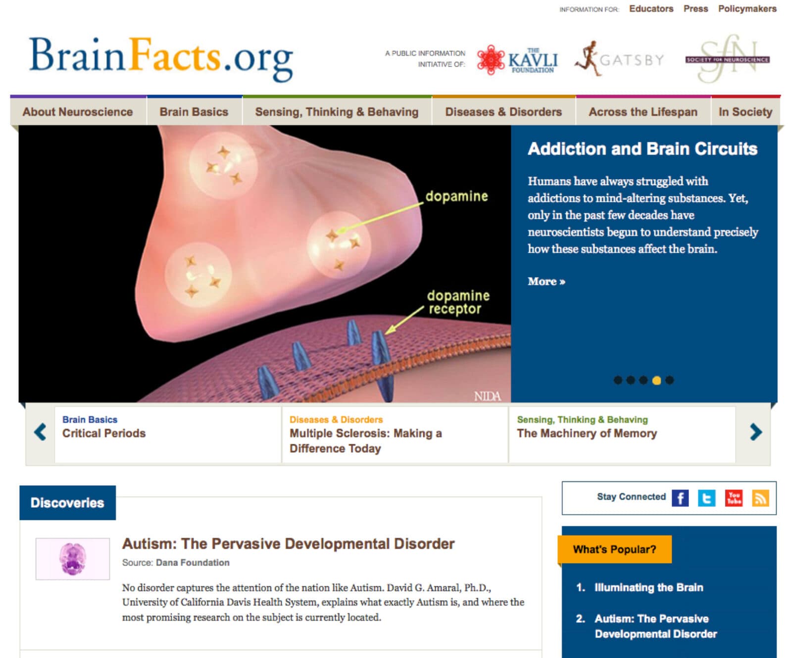 Brainfacts.org Launches - A New Public Website for Learning about the Brain, Neuroscience Research, and Brain Diseases and Disorders